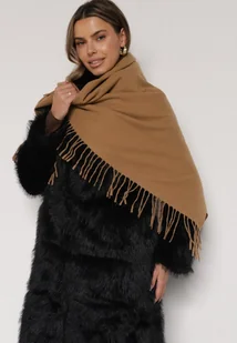Jasnobrązowy Trójkątny Szalik Zdobiony Frędzlami Vetifara