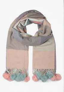 Szeroki szal zimowy z pomponami - pudrowy róż