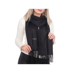 Jednokolorowy Szalik damski duży Cashmere frędzle SZA-01 kolor czarny