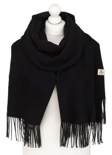 Klasyczny czarny szalik damski PETERSON duży szal z frędzlami jesień zima ciepły i miły w dotyku elegancki prezent