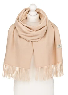 Klasyczny szalik damki z frędzlami beżowy PETERSON duży szal jesień zima miły w dotyku wiskoza na prezent