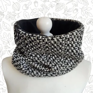 Bardzo starannie wykonany komin wykonany z 2 warstw materiału. Wierzchnia - super jakości tkanina swetrowa w kolorze biało-czarnym, spód ciepły polar w kolorze czarnym. Komin zdobiony jest ręcznie tłocz ...