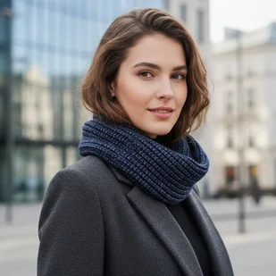 Komin damski granatowy szal Wełniany Alpaka