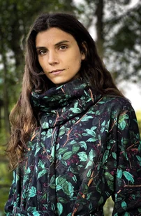 KOMIN (dopasowany i ciepły) autorski print leśne MALINY na zielonym tle (bawełna)