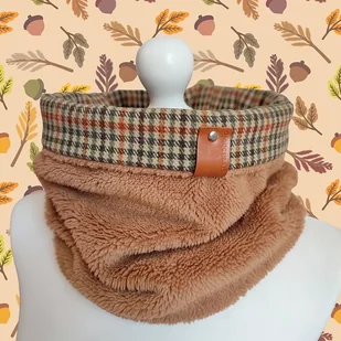 Bardzo starannie wykonany komin wykonany z 2 warstw materiału. Wierzchnia - kraciasta tkanina wełniana (włoska, super jakości) w kolorach brązowym, khaki, beżowym,, rudym; spód z bardzo miękkiego, bardzo ...