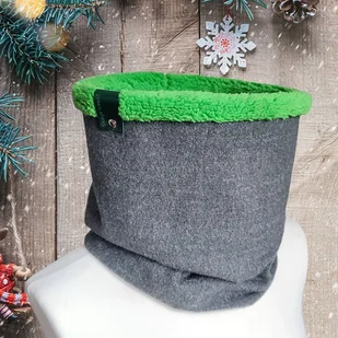Bardzo starannie wykonany komin wykonany z 2 warstw materiału. Wierzchnia - tkanina flauszowa w kolorze szarym; spód z bardzo miękkiego, bardzo miłego w dotyku i ciepłego polaru w zielonym kolorze. Szal ...