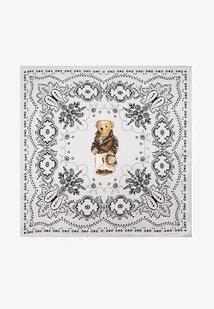 Mała apaszka damska jedwabna biała z misiem 53 cm x 53 cm