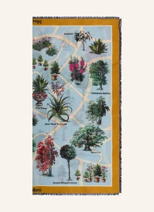 Wyprodukowano we Włoszech. Detal z marką. Z wełny ze strzyży. Z domieszką jedwabiu. Wzór na całej powierzchni. Krótkie frędzle na zakończeniach. Dzianina o drobnym splocie