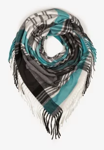Niebiesko-Biały Kraciasty Szalik z Wiskozy i Bawełny z Frędzlami Relavis