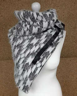 Ogromy szal biały z czarnym ze skórą, ponczo, narzutka