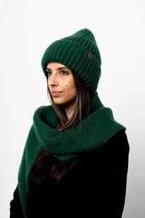 PUCHACZ - szalik wełna merino, bawełna czesana zielony butelkowy