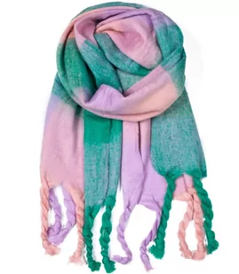 szal z frędzelkami ciepła, puchata dzianina W kwadraty bogata kolorystyka ozdobne frędzle warkocze Wyjątkowy i niepowtarzalny szal, idealny jako dodatek Pięk...