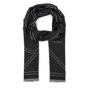 Szal Calvin Klein Emblem Repeat Lw Shawl W Fringes LV04F8074G Czarny