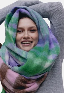 Szal fioletowo-zielony w kratę z frędzlami 40x190 cm