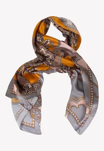 Szal jedwabny damski brązowy z motywem orientalnym 55 cm x 170 cm