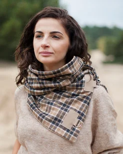 Bardzo starannie wykonany szal zapinany na 2 karabińczyki. Szal zostały uszyty z 2 warstw materiału - wierzchnia - miękka, kraciasta tkanina wełniana w kolorach, beżowobrązowym i czarnym, spód z beżoweg ...
