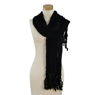 Marszczony, efektowny szalik damski. Zakończenia w postaci frędzelków dodają mu lekkości i subtelności. Wykonany z niezwykle miękkiego i przyjemnego materiału.