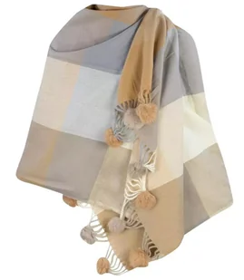 z pomponami wzór w kratkę ciepły i przyjemny materiał Ciepła chusta w kratkę Piękne zestawienia kolorystyczne Niezwykle miękki i delikatny w dotyku materiał ...