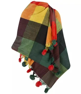 z pomponami wzór w kratkę ciepły i przyjemny materiał Ciepła chusta w kratkę Piękne zestawienia kolorystyczne Niezwykle miękki i delikatny w dotyku materiał ...