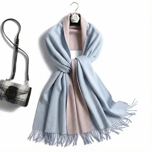 SZAL SZALIK kaszmir 100% kaszmirowy niebieski pudrowy różowy