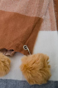 Brązowy Prostokątny Szalik z Kolorowymi Pomponami Komo