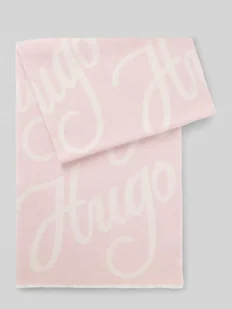 Szal damski HUGO;Model ‘Byanca’;Efekt: Dwukolorowa;Aplikacja: Napis z logo, drobne frędzle;Wykończenie materiału: Żakard;Materiał: Mieszanka wełny