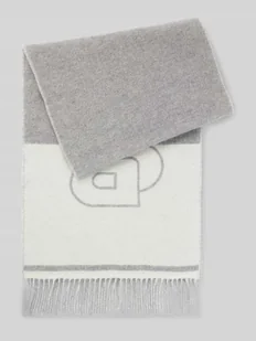 Szal damski BOSS;Model ‘Vianna’;Efekt: Dwukolorowa;Aplikacja: Detal z logo;Wykończenie materiału: Żakard;Materiał: Mieszanka wełny