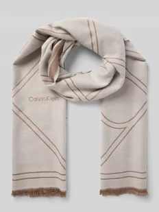 Szal Calvin Klein Emblem Repeat Lw Shawl W Fringes LV04F8074G Biały