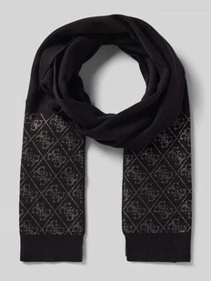 Szal damski Guess;Mieszanka wiskozy ze streczem;Prostokątny fason;Model ‘NORA’;Wzór z logo;Obszycie ozdobnymi kamieniami;Szerokość w rozmiarze 1: 31 cm;Długość w rozmiarze 1: 173 cm