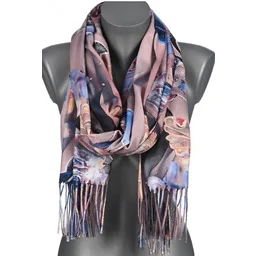 Szalik damski jesień zima MOTYLE na prezent z frędzlami RC3-6 różowy