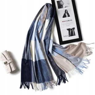 Szalik Damski kaszmirowy niebieski szary beżowy szal prezent ciepły duży AS