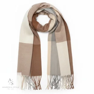 Szalik Damski kaszmirowy w kratkę brązowy beżowy kolorowy szal prezent