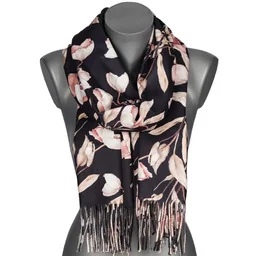 Szalik damski przejściowy jesień zima KWIATY na prezent z frędzlami RC28-2 czarny