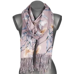 Szalik damski przejściowy jesień zima KWIATY na prezent z frędzlami RC28-8 różowy