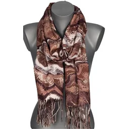 Szalik damski szal ze ZŁOTYM WZORKIEM na prezent z frędzlami RC-24-3 brązowy
