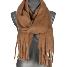 Szalik damski zimowy szal ciepły dred z frędzlami na prezent BRĄZOWY