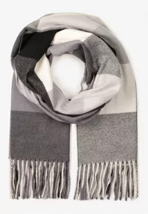 Szary Szalik Bawełniano-Wiskozowy w Kratę z Frędzlami Siravel
