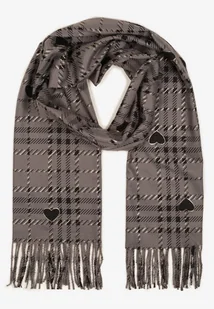 Szary Szalik z Bawełną i Wiskozą Ozdobiony Frędzlami Kratą i Sercami Berita