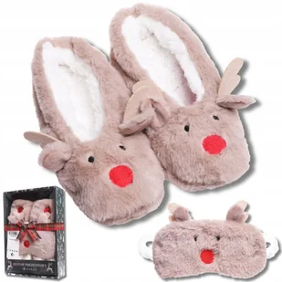 Zestaw Prezentowy MORAJ – Damskie Kapcie + Opaska na Oczy Renifer 35-38✨