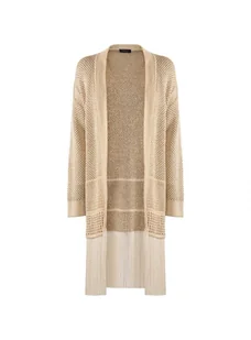 Cardigan in maglia a rete lurex, con un tocco brillante e moderno. Le frange sull'orlo aggiungono un dettaglio boho-chic, rendendo questo capo perfetto per l...