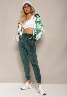 Ciemnozielony Welurowy Komplet Dresowy z Wzorzystą Bluzą z Kapturem i Joggerami Rouviana