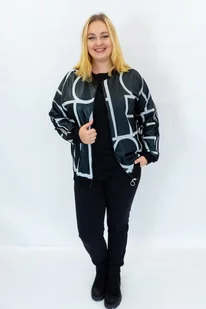 Czarno Popielaty Komplet Dresowy na Zamek z Dodatkiem Eko-skóry 44