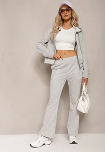 Jasnoszary Komplet Dresowy z Bawełny Spodnie Dzwony i Rozpinana Bluza z Kapturem Auim