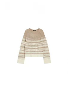 La maglia jacquard a motivi geometrici ha tutto il fascino del tricot nordico – e un tocco in più: arricchita da riflessi scintillanti, accenderà ogni look. ...
