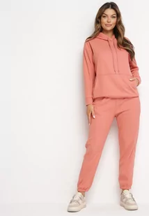 Różowy Bawełniany Komplet Dresowy z Bluzą i Spodniami Zansira