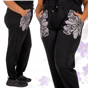 SPODNIE DRESOWE ZENTEX SREBRNY KWIAT bawełna wygodne dresy błysk Duży rozmiar, elastyczna talia i efektowny srebrny nadruk kwiatów sprawiają, że wyróżnisz si...