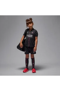Ubierz małe gwiazdy wten trzyczęściowy strój drużyny. Ten zestaw inspirowany profesjonalnymi strojami składa się zkoszulki oraz pasujących do niej spodenek iskarpet. Jest wykonany zlekkiego materiału odprowadzającego wilgoć, dzięki czemu zapewnia młodym sportowcom isportowczyniom wygodę podczas biegania lub zabawy.