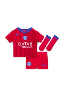 Ubierz małe gwiazdy wten trzyczęściowy strój drużyny. Ten zestaw inspirowany profesjonalnymi strojami składa się zkoszulki oraz pasujących do niej spodenek iskarpet. Jest wykonany zlekkiego materiału odprowadzającego wilgoć, dzięki czemu zapewnia młodym sportowcom isportowczyniom wygodę podczas biegania lub zabawy. Kulisy projektu: Total90: Oryginalne stroje zserii Total90 zaprojektowano tak, by świetnie sprawdzały się przez całe 90minut meczu.