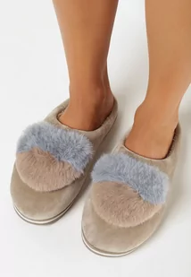 Ciemnobeżowe Kapcie z Futrzanym Pomponem Mabira
