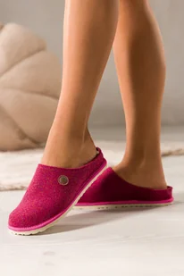Ciemnoróżowe kapcie damskie Inblu obuwie domowe z wyjmowaną skórzaną wkładką ozdoba XH999952